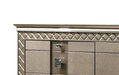 Coral Contemporary Style Dresser in Bronze finish Wood, 40 x 18 x 62, 176lbs. Cosmos Furniture's Coral contemporary style Dresser in bronze finish wood glamour reigns in the design of this collection. Alligator embossing and high polished crystal-enhanced hardware boldly accent the silver finish of the collection. The Coral Eight (8) drawers Dresser provides a dedicated space, 2-drawers that cater to your jewelry and accessories. The remaining 6 drawers are deep and equip with metal drawer glides, mixing quality and function. Matching bedroom pieces sold separately. - Contemporary Style Dresser - In Bronze finish Wood - Eight (8) Drawers - Front Acrylic Legs - Metal back legs - Beveled Mirror inlay - Crushed glass inlay hardware - Dovetail construction drawers - Full extension deep wood box Drawers glides - Bottom drawer is dust proof - Matching bedroom pieces sold separately