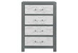 Embrace the height of fashion and storage with the Micah Chest by Global Furniture USA. This vertical storage solution is accentuated with faux marble drawer fronts, against a backdrop of shimmering silver, delivering a lavish impression in any room. The chest's drawers are fitted with stylish acrylic and chrome pulls that not only enhance its beauty but also ensure smooth operation. Ideal for organizing clothes and accessories, the Micah Chest is a testament to luxury and efficiency in home furnishings.