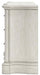 Add a touch of romance to your bedroom with this dresser and mirror. Its antiqued white painted finish and serpentine-shaped silhouette are the definition of easy elegance. Custom-designed aged pewter-tone hardware adds surprisingly casual appeal.